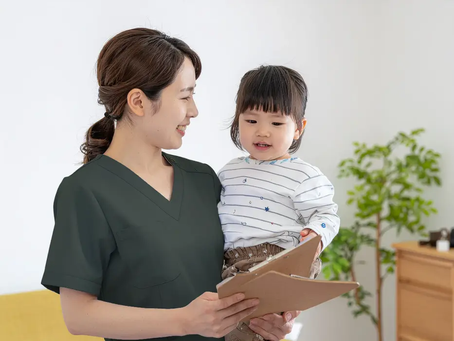 新生児から訪問可能。医療的ケアが必要な子どもの支援・育児相談・登校支援など、関係機関と連携を行い